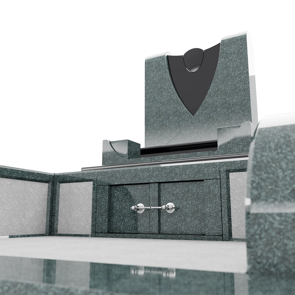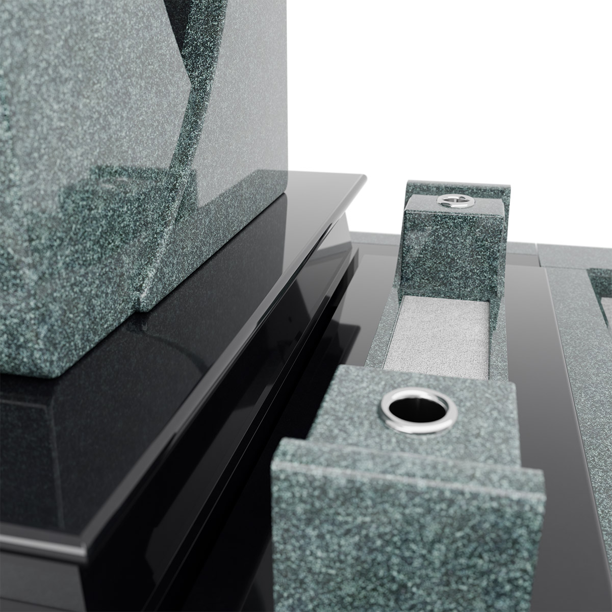 石材はクンナムとM-1-Hを使用しています。このデザイン墓石は和と洋の要素が調和し、夢幻的な雰囲気を醸し出しています。ややトーンを抑えつつモダンなスタイルが特徴で、洗練された風格を持っています。和と洋の融合をお求めの方におすすめです。