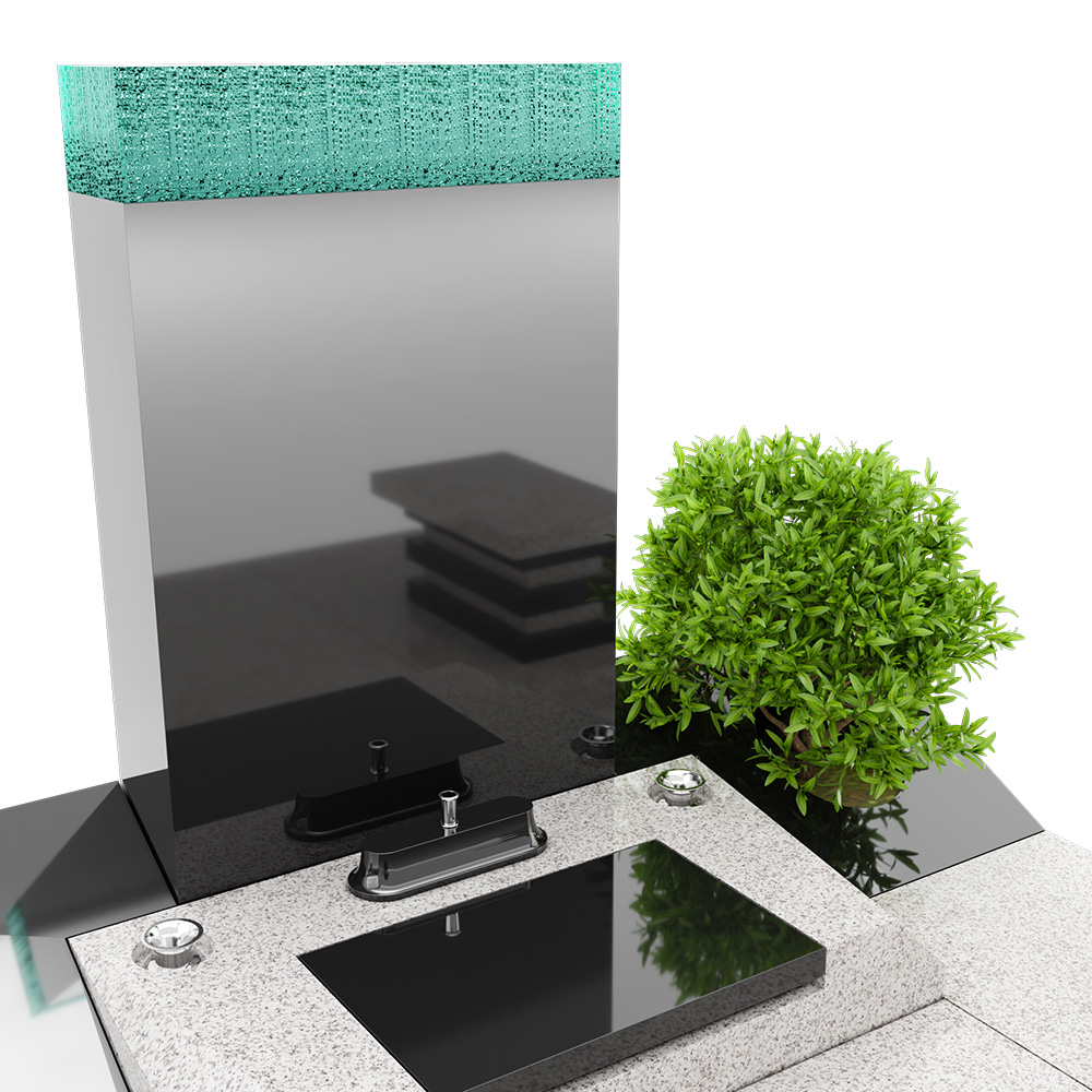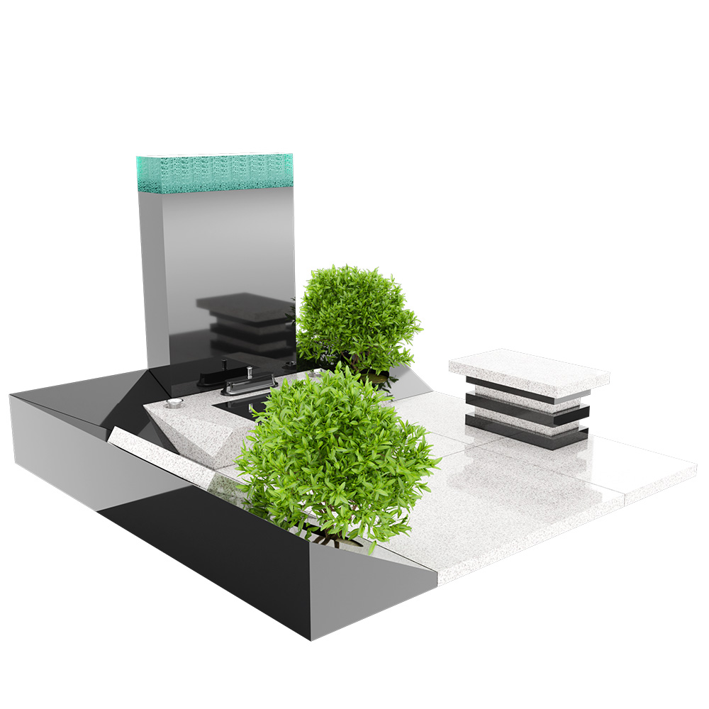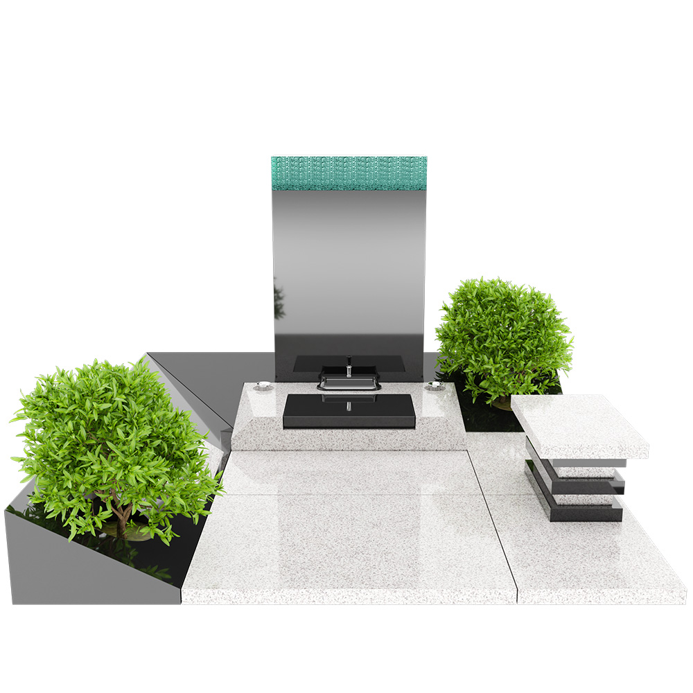 「せせらぎの園」は、山あいの渓流を流れる水の音、静かで清らかな情景をモチーフとしたデザイン墓です。直線的な構成の中に、自然のやさしいリズムを感じさせる佇まいが、訪れる方の心を穏やかに解きほぐします。竿石には積層ガラスをあしらい、光を受けて生まれる透明感あふれるきらめきは、渓流のせせらぎを映し出すかのようで、静寂の中に心地よい動きを添えています。石材には高品質なクンナムと国産稲田石を使用。落ち着いた色調と重厚感を兼ね備え、自然と調和した上質な空間を長く保ちます。水と光、静けさ、そして故人様への想いをやさしく包み込み、安らぎの場となりますように。