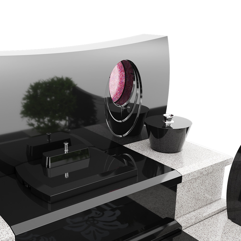 「面影の園」は、心に残る大切な人の姿やぬくもり――ふとした瞬間によみがえる“面影”をテーマにした、重厚感とやさしさを併せ持つデザイン墓です。静かに佇むその姿は、故人様との記憶をそっと呼び覚まし、訪れる方の心に深い安らぎをもたらします。竿石には温もりあるレッドピンクのアートガラスをあしらい、深みの中でやさしく輝きます。その彩りは、胸の奥に灯り続ける想いの象徴のように、静かでありながら確かな存在感を放ちます。曲線を取り入れた構成が全体にやわらかな印象を与え、落ち着きの中にも品格を感じさせます。石材には高品質なクンナムと国産稲田石を使用。黒と白のコントラストが美しく、上質で洗練された佇まいを長く保ちます。想いと記憶を大切に受け止め、故人様とのつながりを静かに感じ続けていただけるでしょう。
