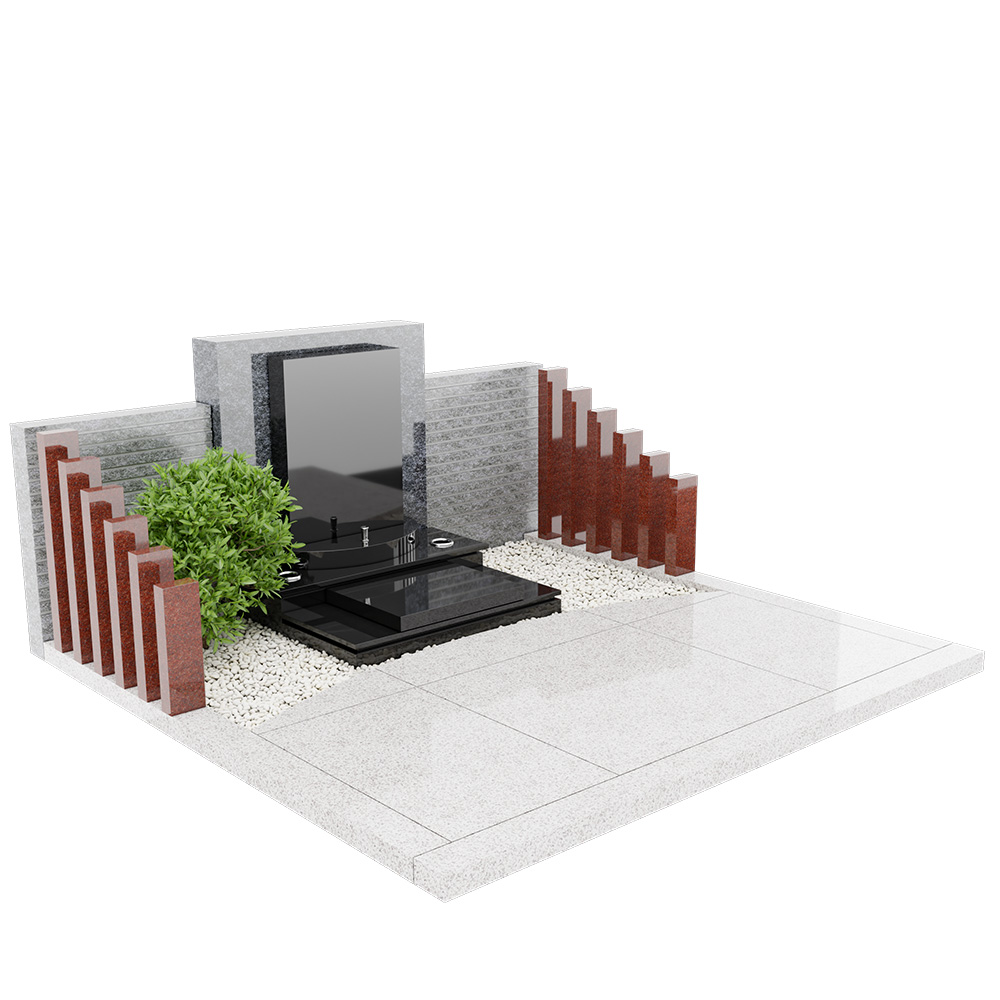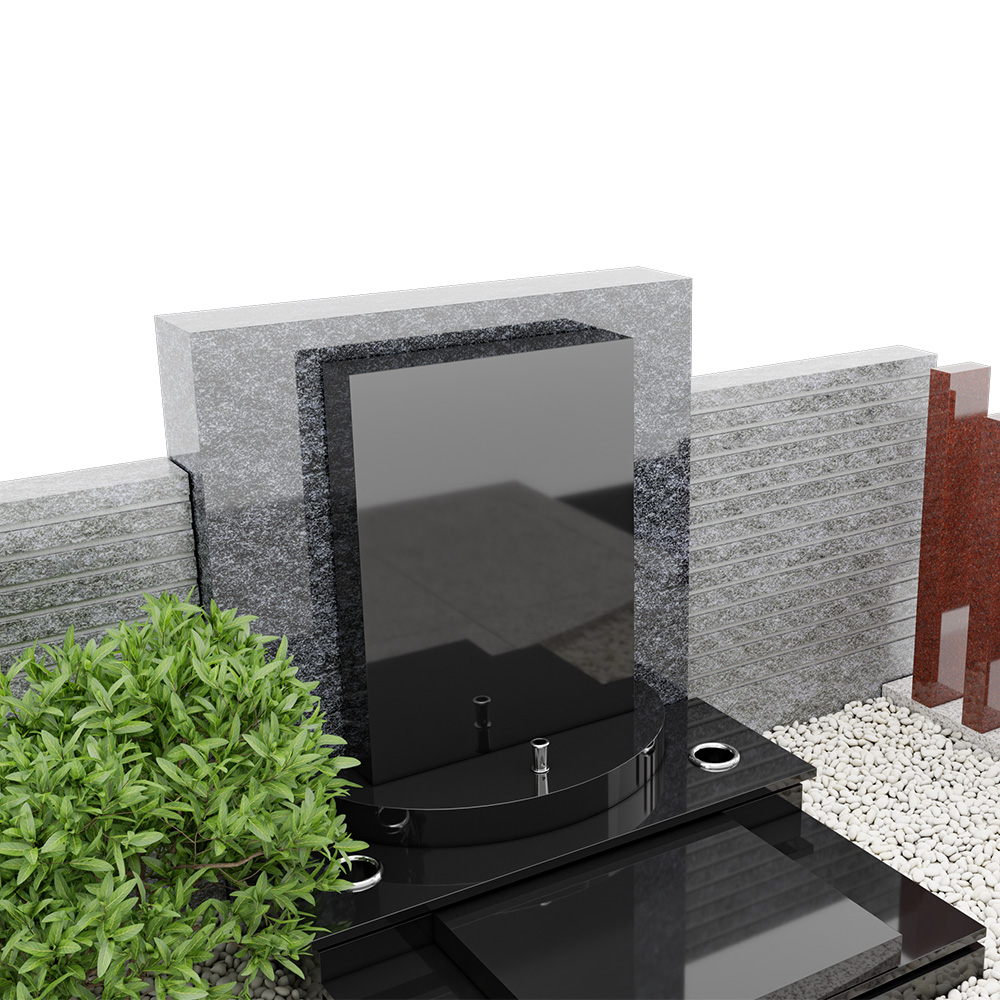 「清寂の園2」は、清寂の園に外柵をあしらったデザインです。赤いニューインペリアルレッドが上質なアクセントとして映え、さらに空間の存在感を印象付けます。静けさの中に凛とした存在感が宿るモダンなデザイン墓。シンプルでスタイリッシュなフォルムが、洗練された印象を演出します。清寂の園と同様に、石材には高品質なクンナムと国産稲田石を使用し、重厚感と清潔感が美しく調和。白玉砂利と植栽の緑がやさしく寄り添い、訪れる人々に静謐な癒しと安らぎを提供してくれるでしょう。